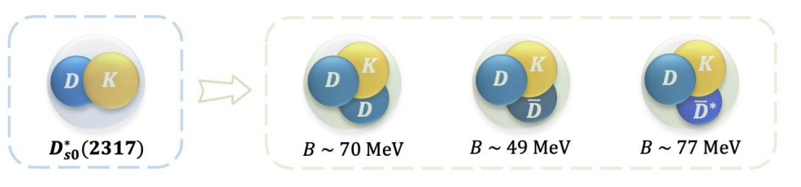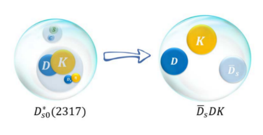 自2019年起,耿立升教授团队针对这一前沿问题开展系统研究。基于D介子与K介子组成的分子态(DK分子态)理论模型中的关键粒子——